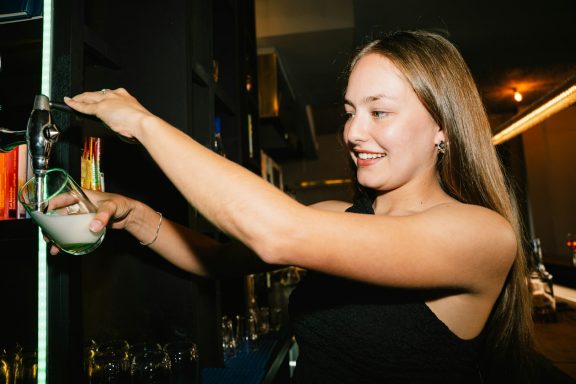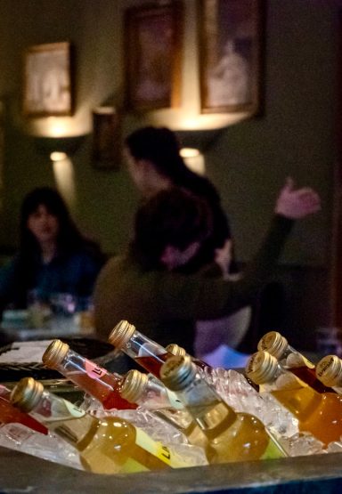 Un carrito de shots lleva la diversión directamente a la pista en el momento más prendido de la fiesta.